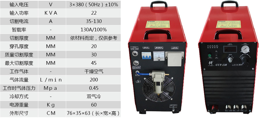 等離子電源電流35A-130A無級可調(diào);切割面垂直度高,碳鋼切割可在5°之內(nèi);采用自主研發(fā)割炬,穿透能力強(qiáng)、垂直度好;適合數(shù)控切割機(jī)及機(jī)器人配套使用;暫載率:100%,可長時(shí)間工作